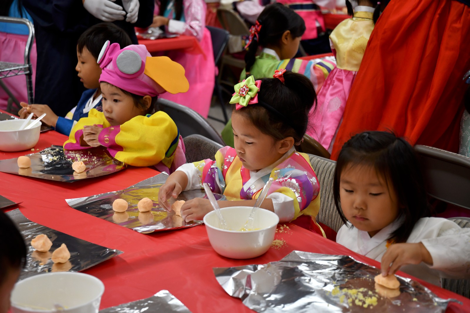 반에서 수업을 마치고 11시부터 학생들은 손을 깨끗이 씻고 송편을 만들러 친교실에 모였습니다. 송향화 선생님이 송편을 만드는 법을 자세히 설명해 주셨고 이에 따라 학생들은 열심히 송편을 빚었습니다. 많은 학생이 지난 수년간 해마다 송편 빚기를 해 온 실력으로 매우 신속하고 예쁘게 송편을 빚었습니다. 또한, 자신이 만든 송편을 아주 소중하게 여기고 자기가 만든 떡을 먹겠다고 하였습니다. .