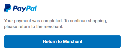 9. PayPal 사이트에서 성공적으로 결제를 마치면 다솜 웹으로 돌아갈 수 있는 [Return to Merchant] 버튼을 클릭해서 다솜 웹으로 다시 돌아가 결제 과정을 마무리해 주십시오. (아래 그림 참조)