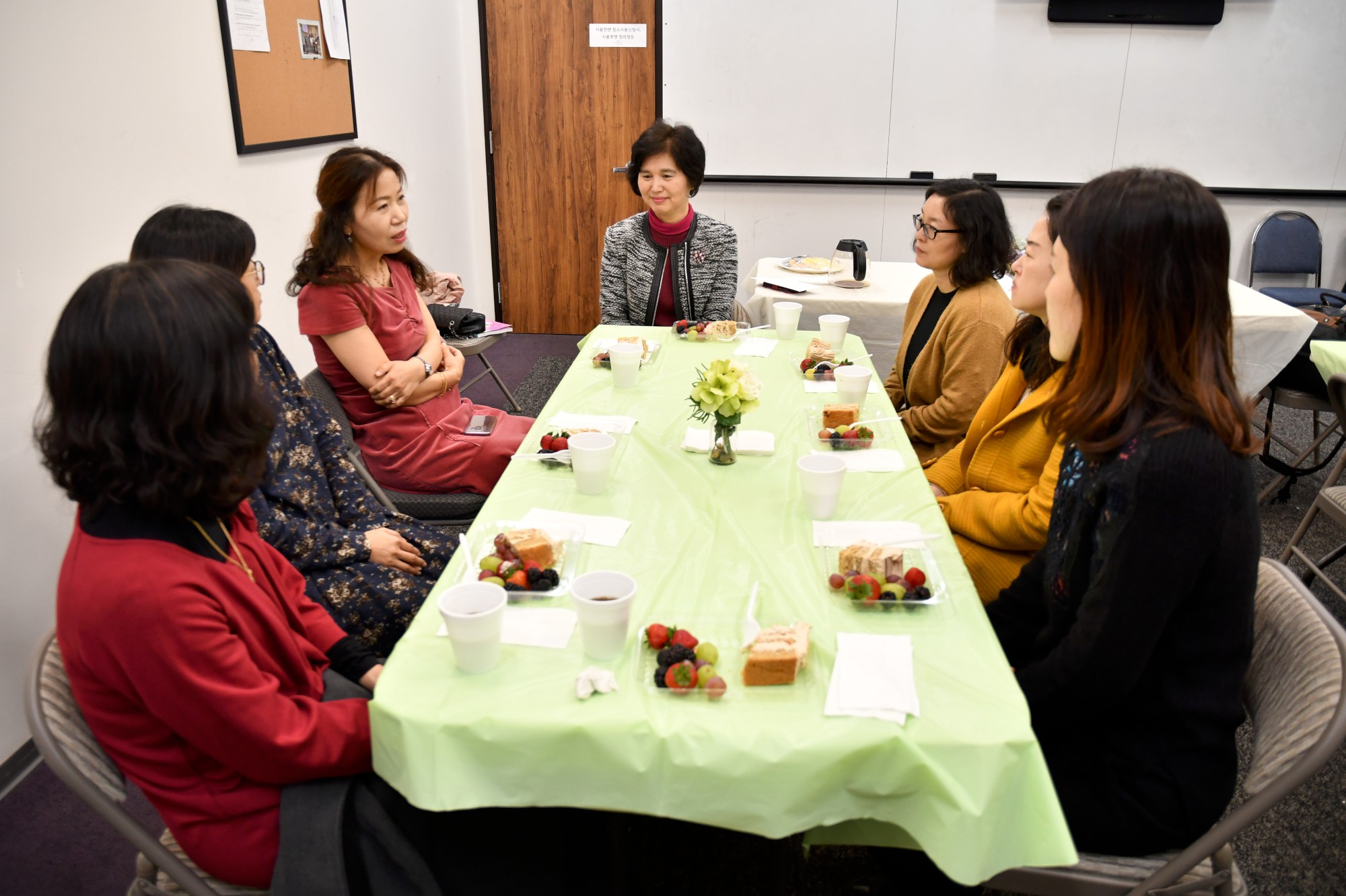 2018년 12월 15일 SF 한국교육원 우창숙 교육원장님이 본교를 방문하여 선생님들과 간담회를 가졌습니다. 우창숙 원장님은 지난 8월 말에 SF에 부임하신 이래로 본교 방문은 첫 번으로 앞서 개최된 <오감으로 배우는 유네스코 한국 유네스코 세계유산 II> 출판기념회에 참석하기 위해 본교를 방문하셨습니다.