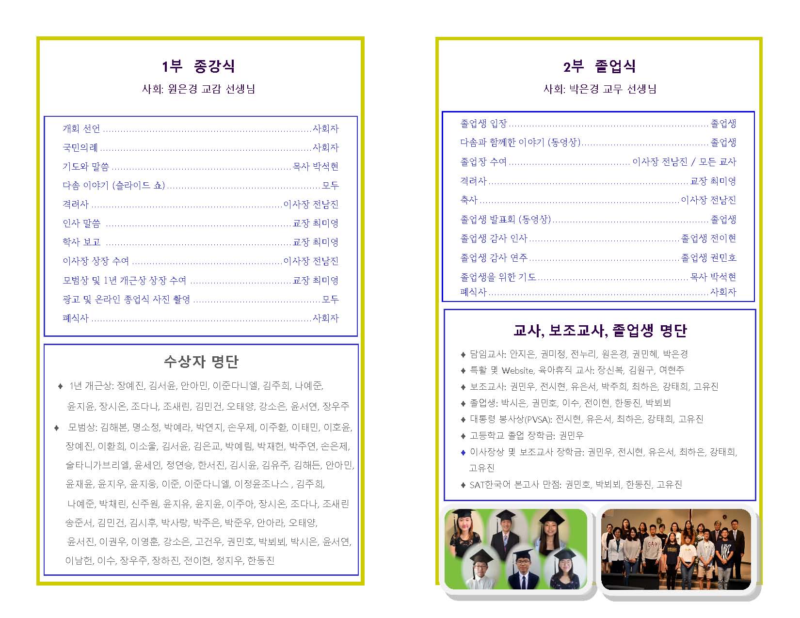 8. 모범상, 혹은 개근상(개근상 수상자)을 프린트하여 상장 수여식 순서에 상장과 얼굴이 보이도록 들도록 해 주시면 감사하겠습니다.