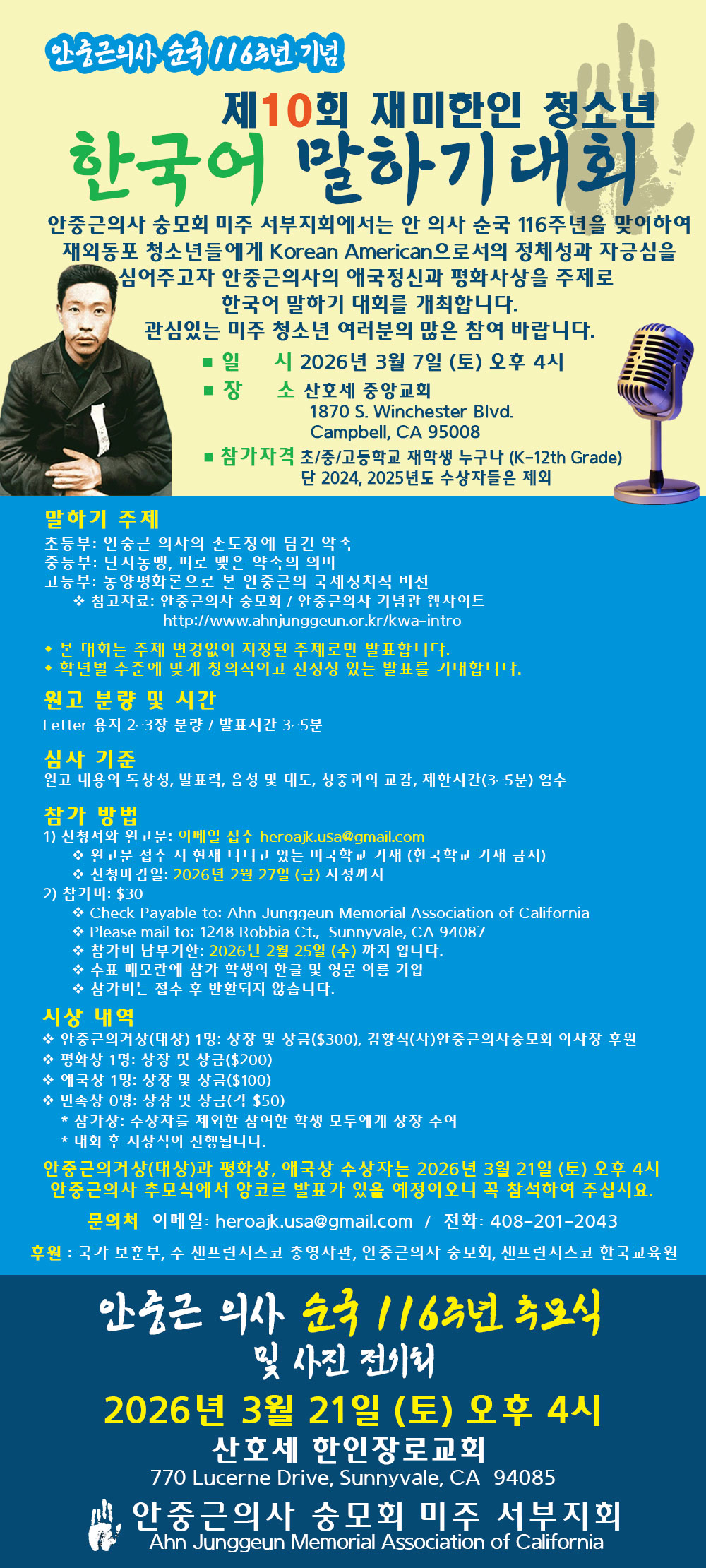 안중근 의사 순국 116주년 기념 한국어 말하기 대회