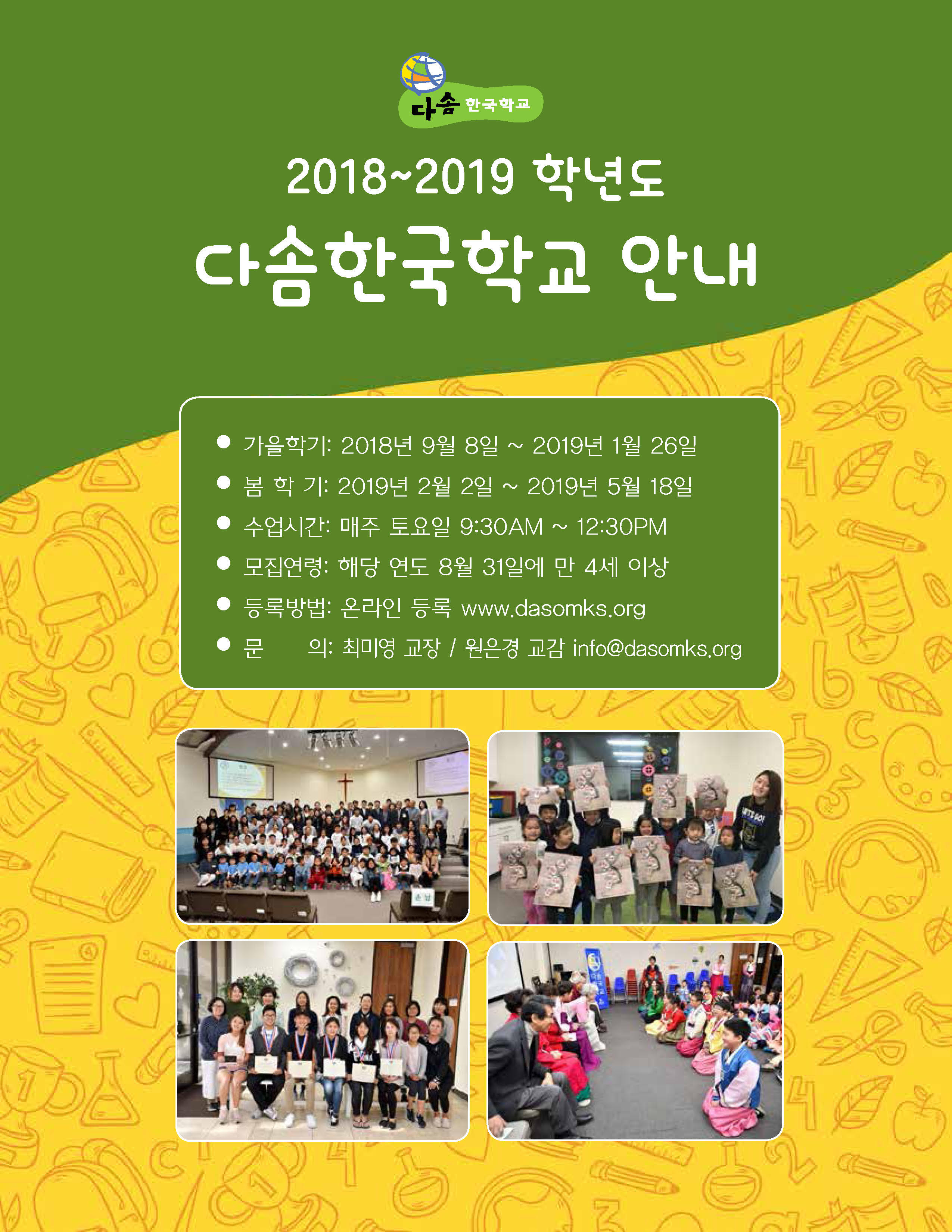 다솜한국학교 안내 포스터 - 2018-2019학년도