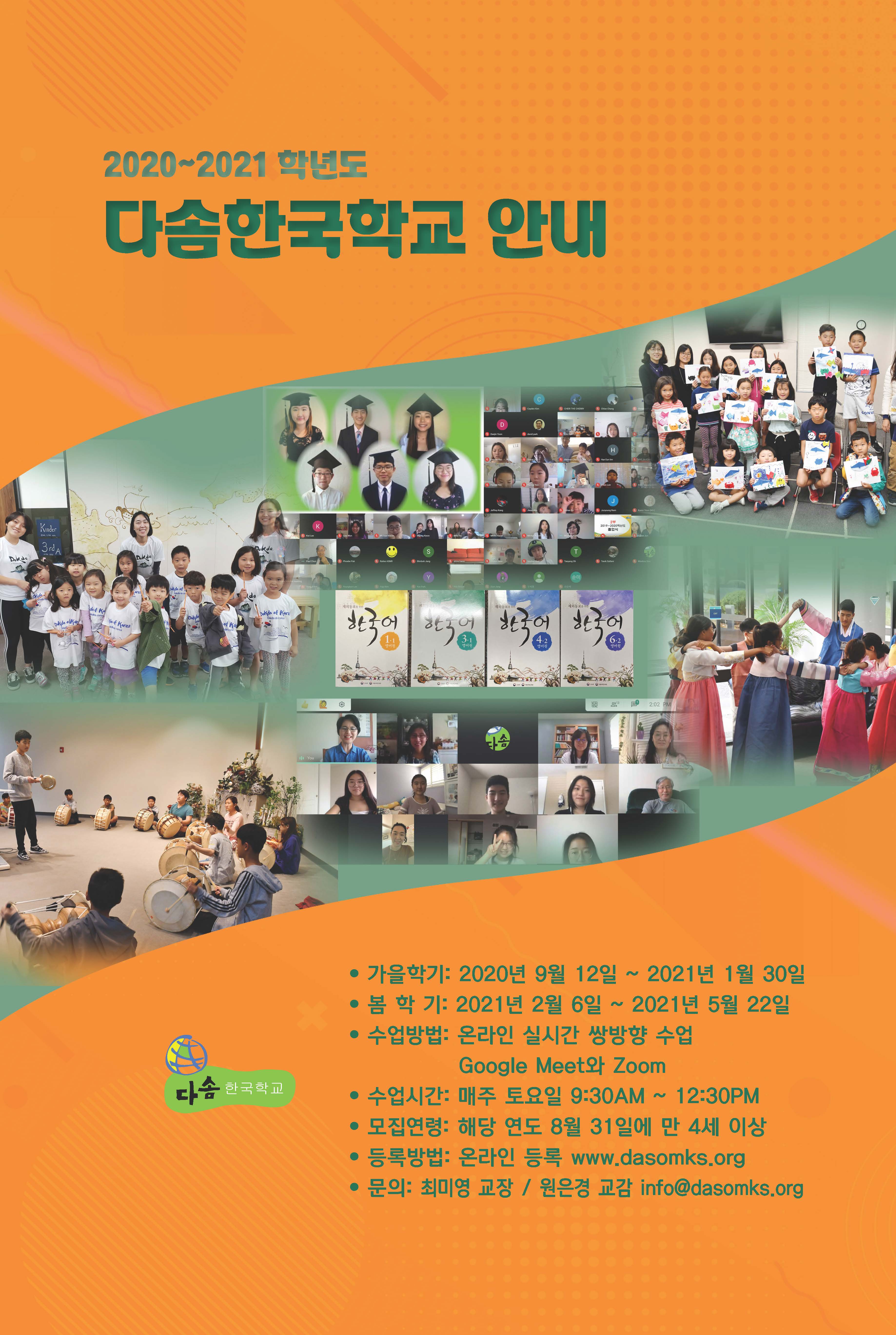 다솜한국학교 안내 포스터 - 2020-2021학년도