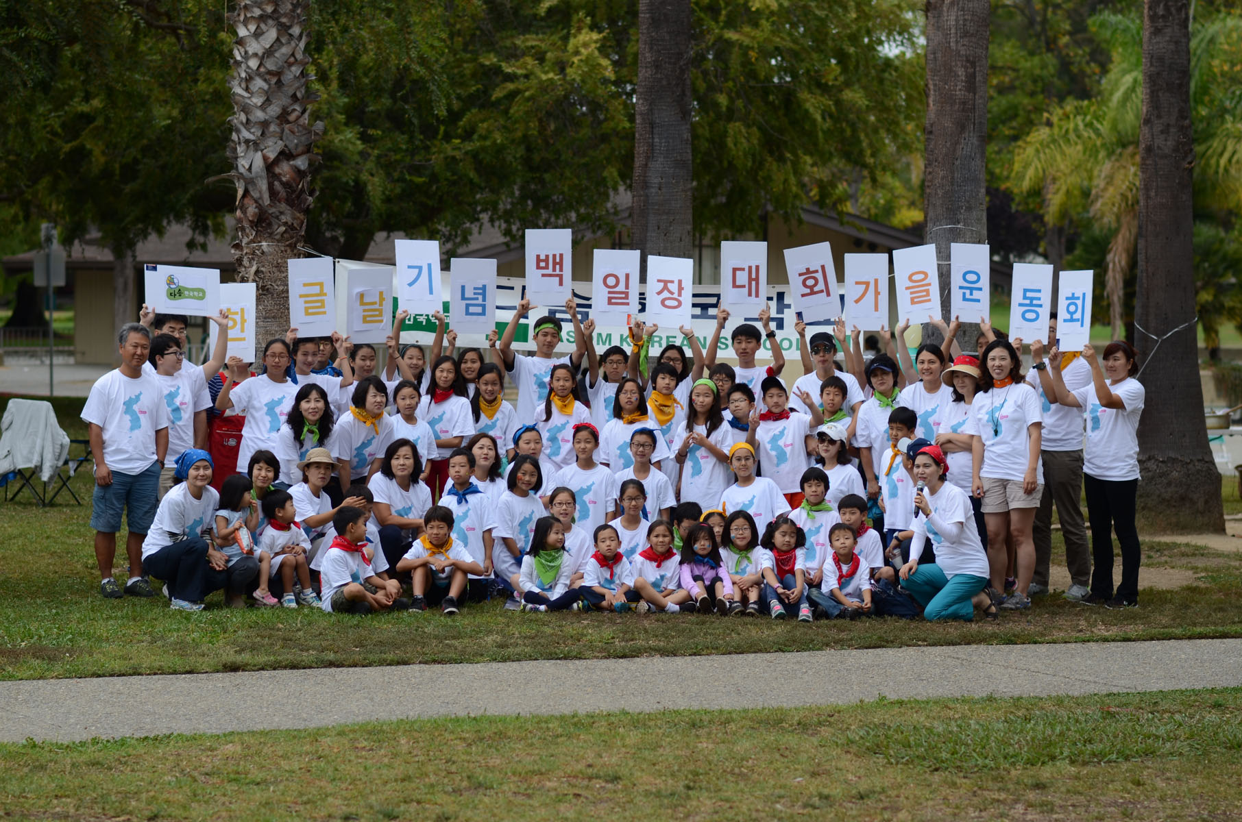 지난 10월 10일 오전 9시부터 569돌 한글날 기념 백일장 및 운동회가 Sunnyvale에 있는 Las Palmas Park에서 개최되었습니다. 여름 방학 동안 교사회의를 통하여 백일장 및 운동회 준비를 해 왔습니다. 학교와 가까운 공원을 답사하여 학생들이 안전하고 즐겁게 지낼 수 있는 공원을 선택하였고 백일장 방법, 제목 등을 의논하고 운동회 때에 할 게임과 준비물, 그리고 안전 사고 방지에 관한 논의도 계속 하였습니다. 선생님들이 모여서 100개의 콩주머니를 일일히 손으로 만들었는데 콩만 넣으면 아플 수 있어서 메밀 껍질을 반씩 섞어서 만들기로 하였습니다.