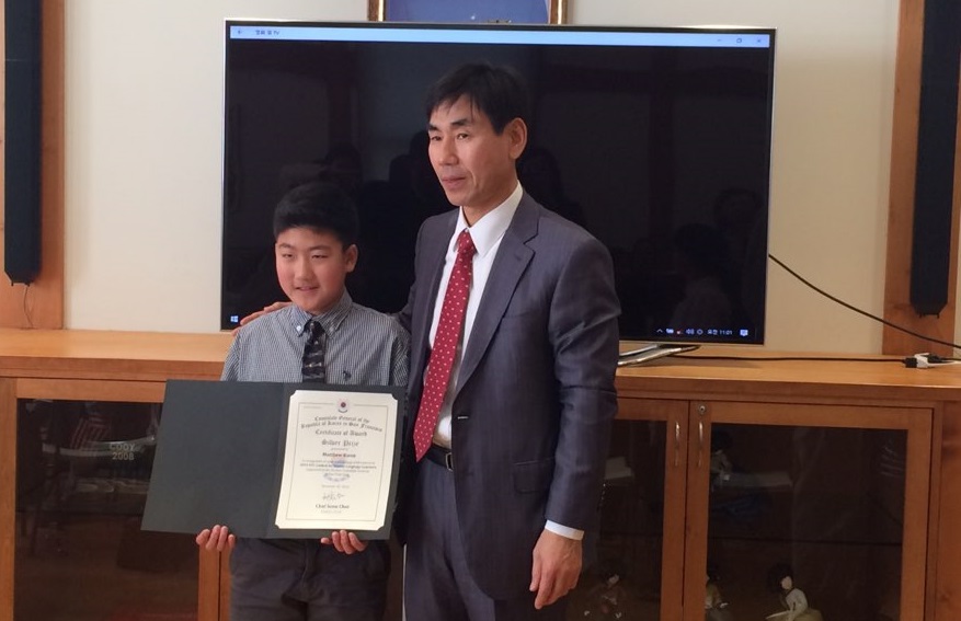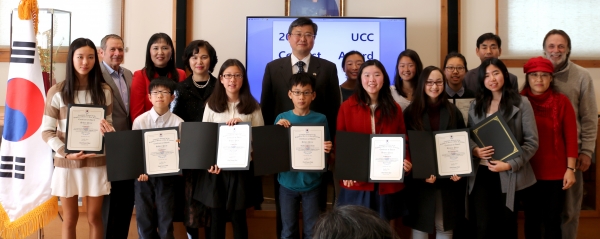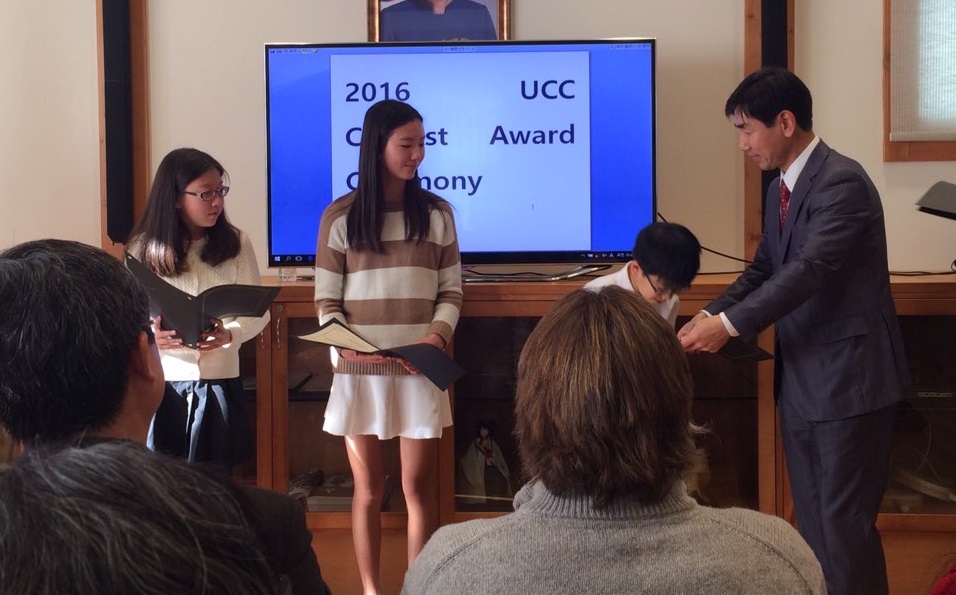 샌프란시스코 총영사관 교육원에서 주최한 한국역사문화 UCC 대회 시상식이 지난 2016년 12월 28일 수요일 오전 10시에 샌프란시스코 총영사관에서 개최되었습니다. 신재현 총영사님과 최철순 교육원장님이 시상하시고 최미영 교장선생님도 내빈으로 참석하였고 지도교사 원종은 선생님도 함께 해 주셨습니다.