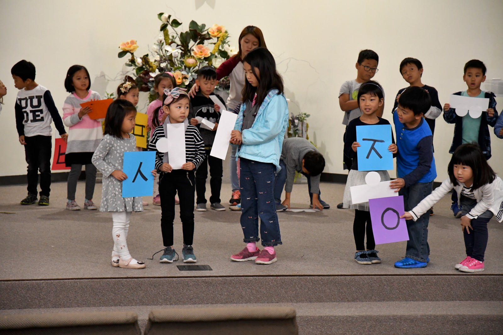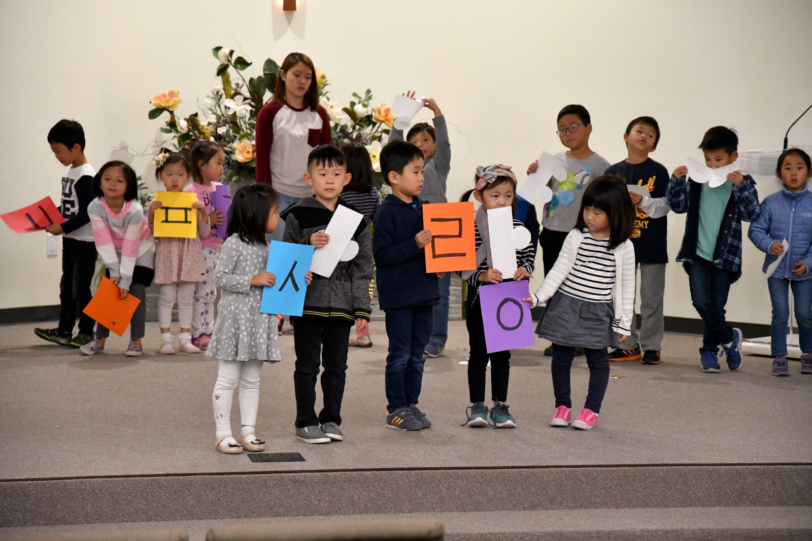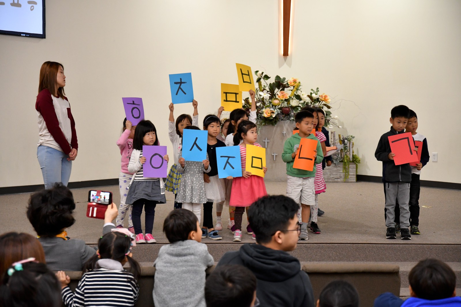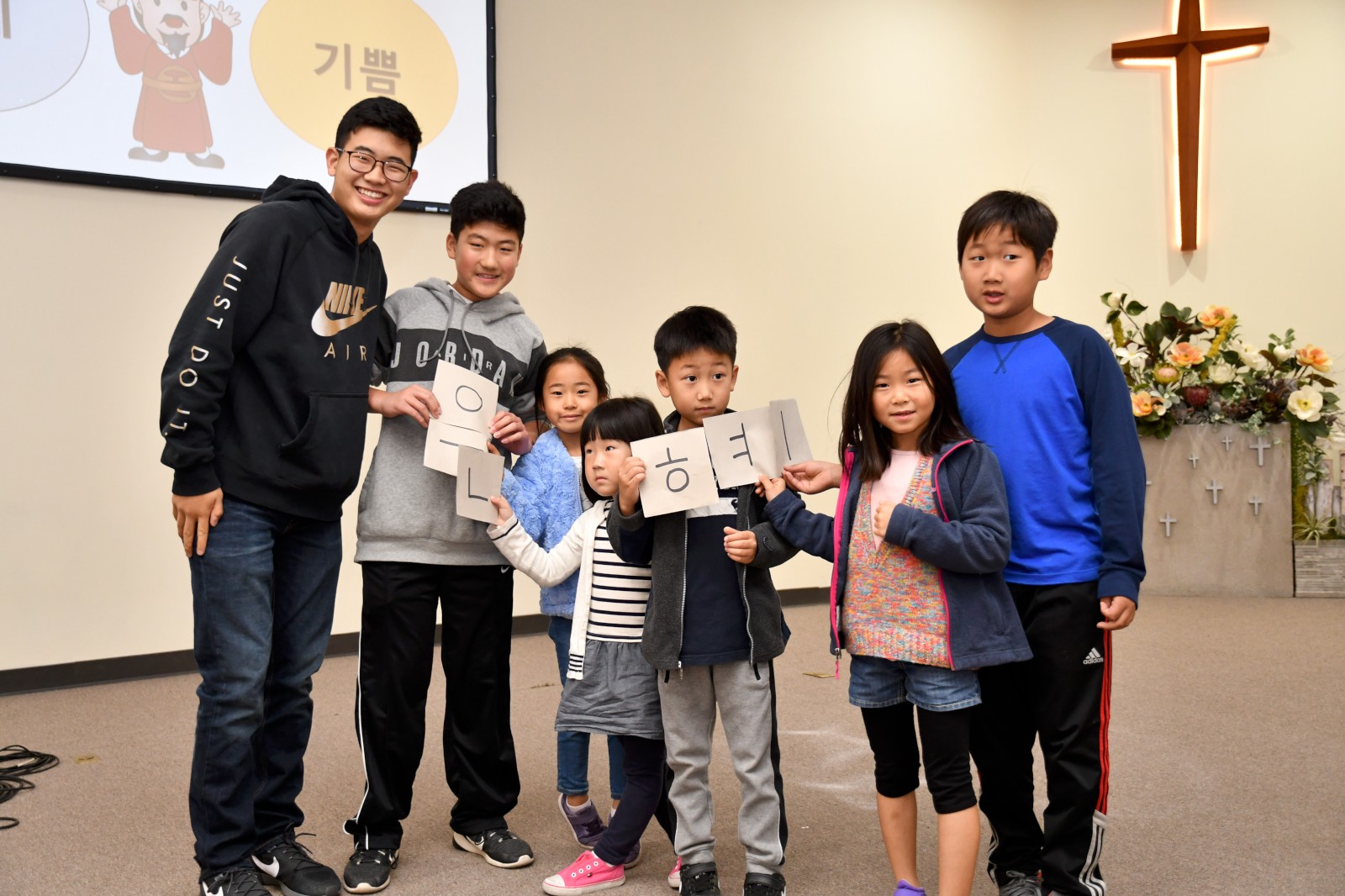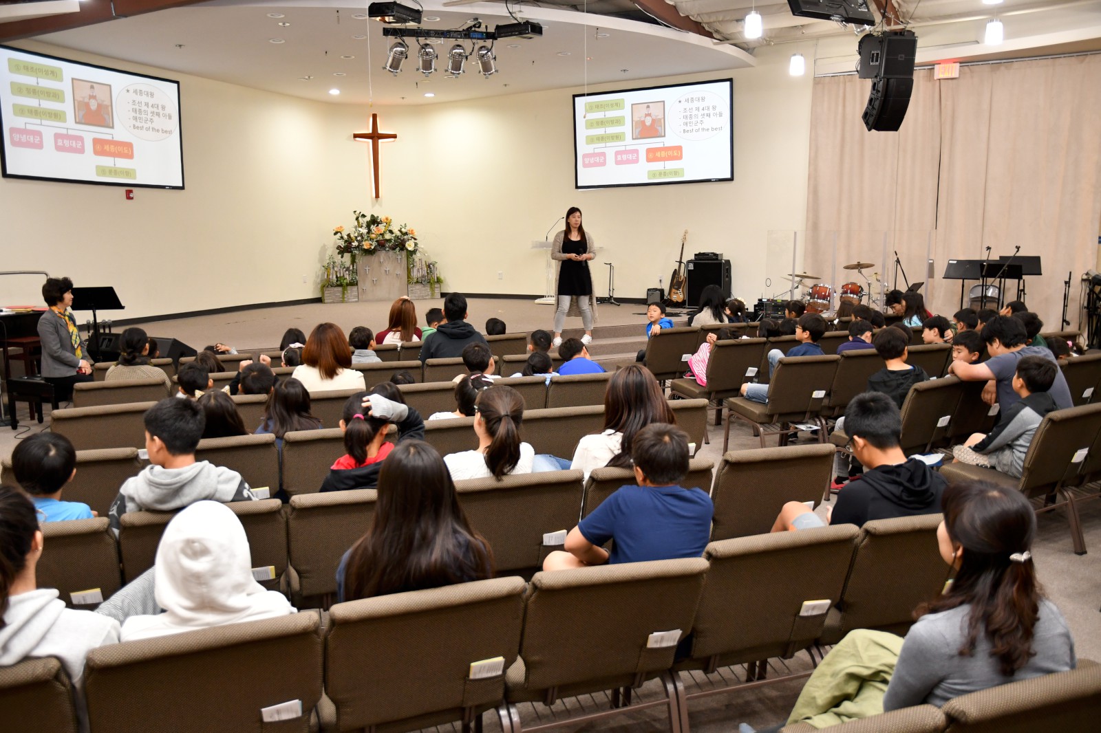 어린 학생들과 큰 반 학생들이 팀을 이루어 글자 만들기 게임에서 협동으로 글자를 만들어 보고 “백성을 가르치는 바른 소리~”로 시작되는 한글 노래를 배우며 수업을 마쳤다. 앞으로 3주 동안 학생들은 각 반의 수준에 맞는 학습지를 통해 <훈민정음과 세종대왕>에 관하여 더 자세히 공부하게 된다.