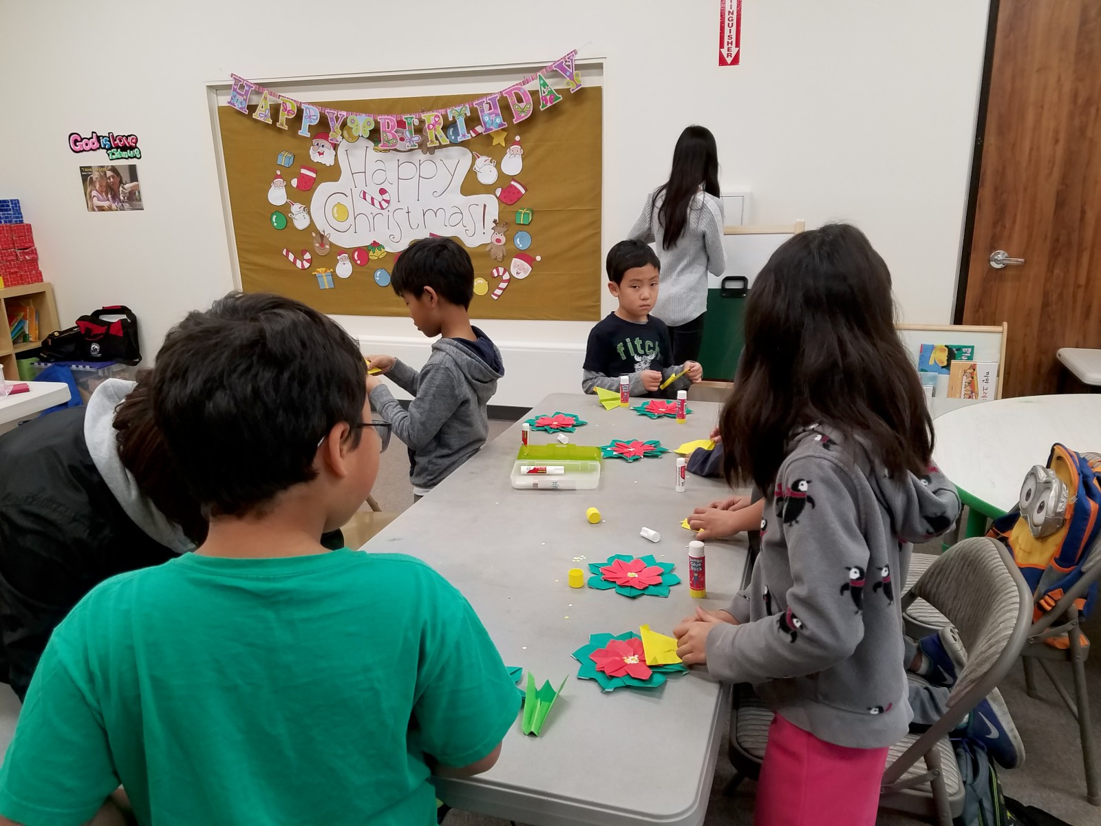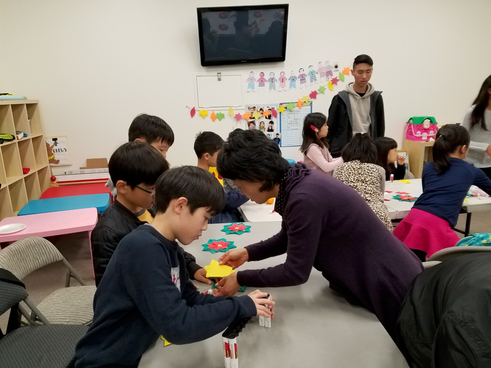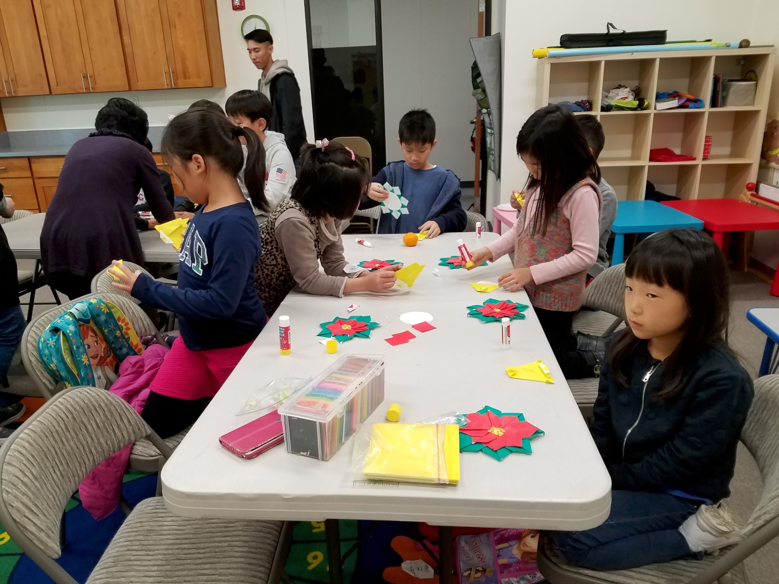 송향화 선생님이 담당하시는 종이접기반에서 포인세티아와 종을 만들어 보았습니다.