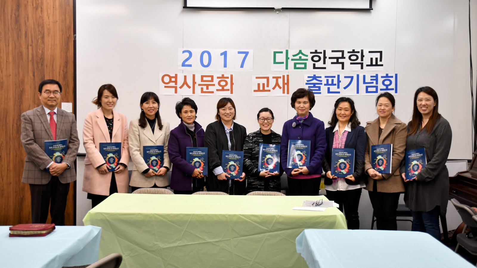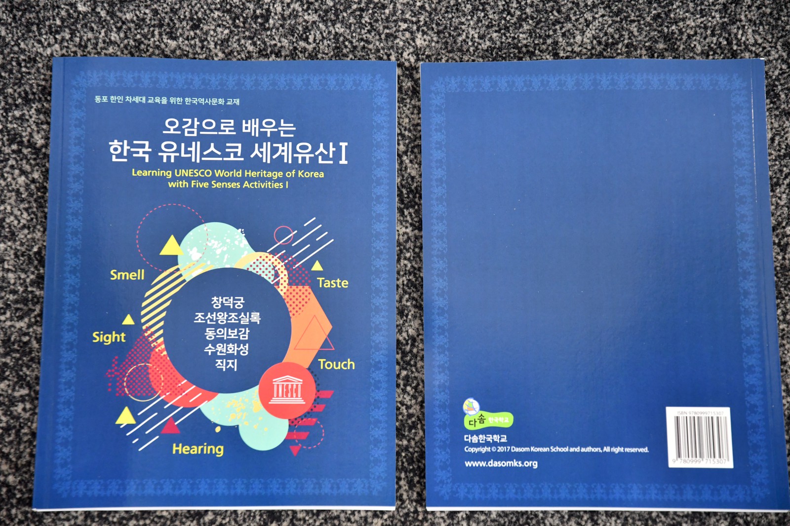 2017년 12월 16일 "오감으로 배우는 한국 유네스코 세계유산"이라는 제목으로 250페이지의 책을 다솜한국학교에서 출판했습니다. 저자 4명과 우리 선생님들 모두가 힘을 모아 발간한 책입니다. 2016년부터 계획하여 거의 1년 반 동안 계획, 연구, 적용, 정리 단계를 거쳐 만들었습니다.