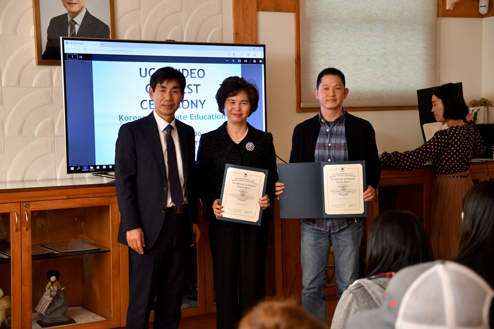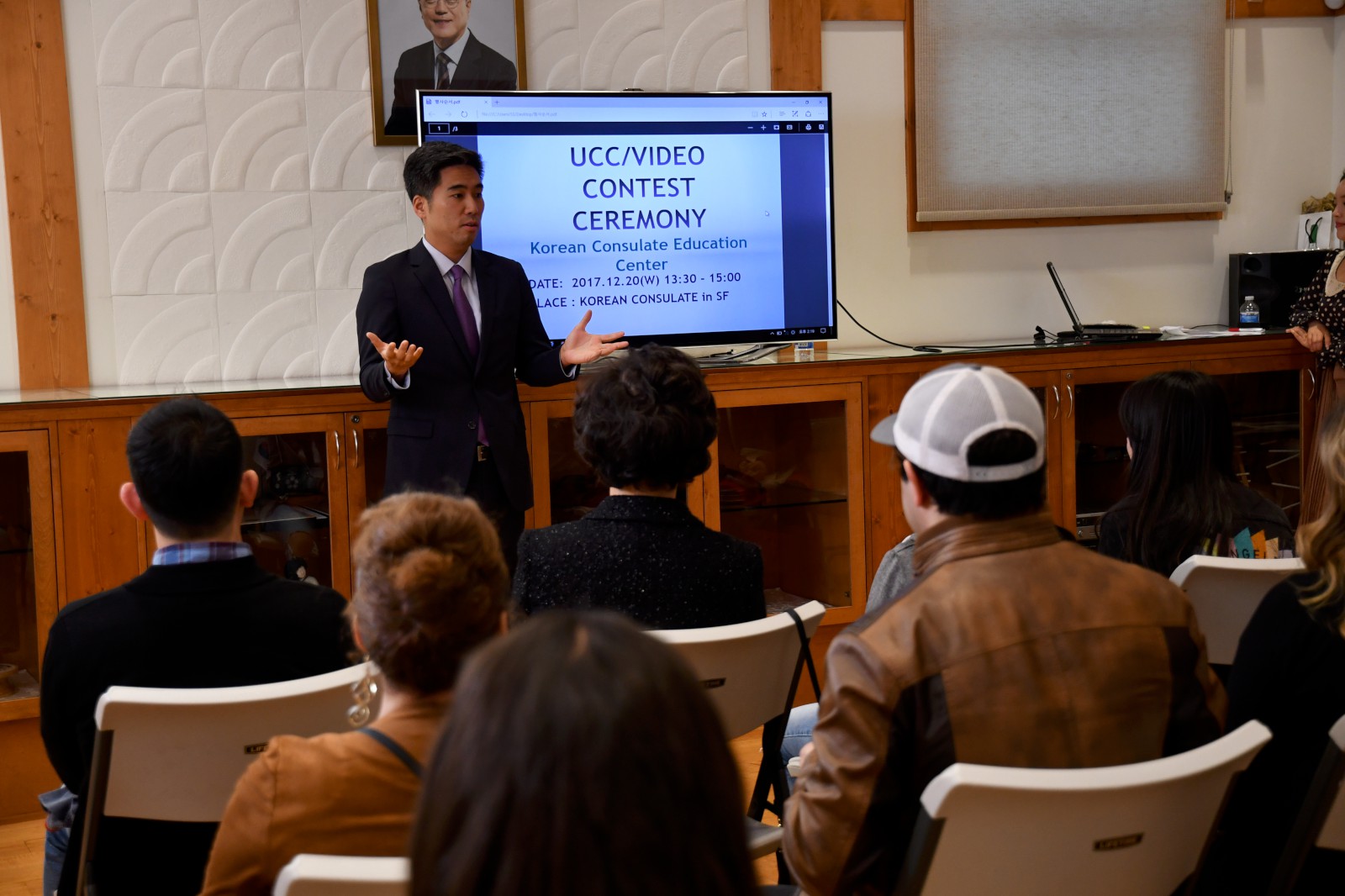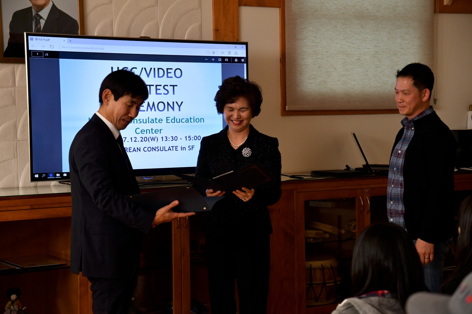 2017년, 주 샌프란시스코 한국교육원(원장 최철순) 주관으로 개최된 ‘한국알리기 홍보 콘텐츠 대회’에서 동상을 차지하여 지난 12월 20일 수요일 오후 1시 30분부터 샌프란시스코 총영사관에서 개최된 시상식에 최미영 교장선생님과 노현아 학생 부모님 그리고 김원구 웹간사 선생님이 참석하였습니다.