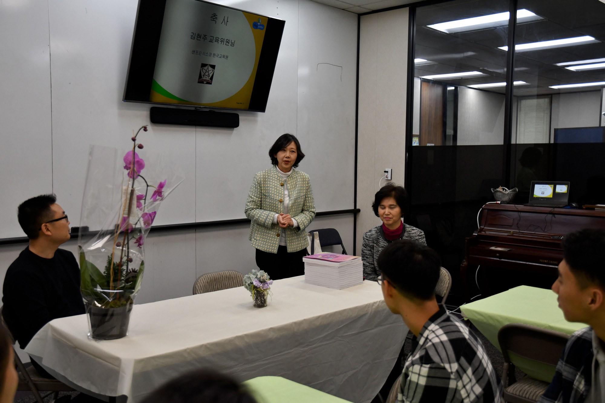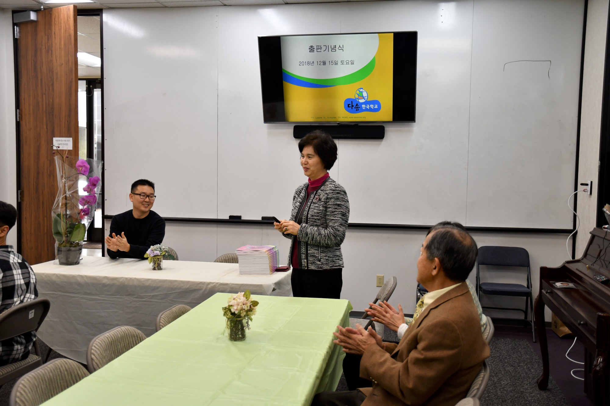 윤대진 목사님의 기도로 시작된 출판기념회에는 샌프란시스코 한국 교육원 우창숙 원장님과 지난 11월 6일 FUHD교육국의 교육위원으로 선출된 김현주 교육위원님이 참석하여 축사를 했으며 다솜한국학교 이사회를 대표하여 전남진 이사님이 격려사를 해주셨습니다.