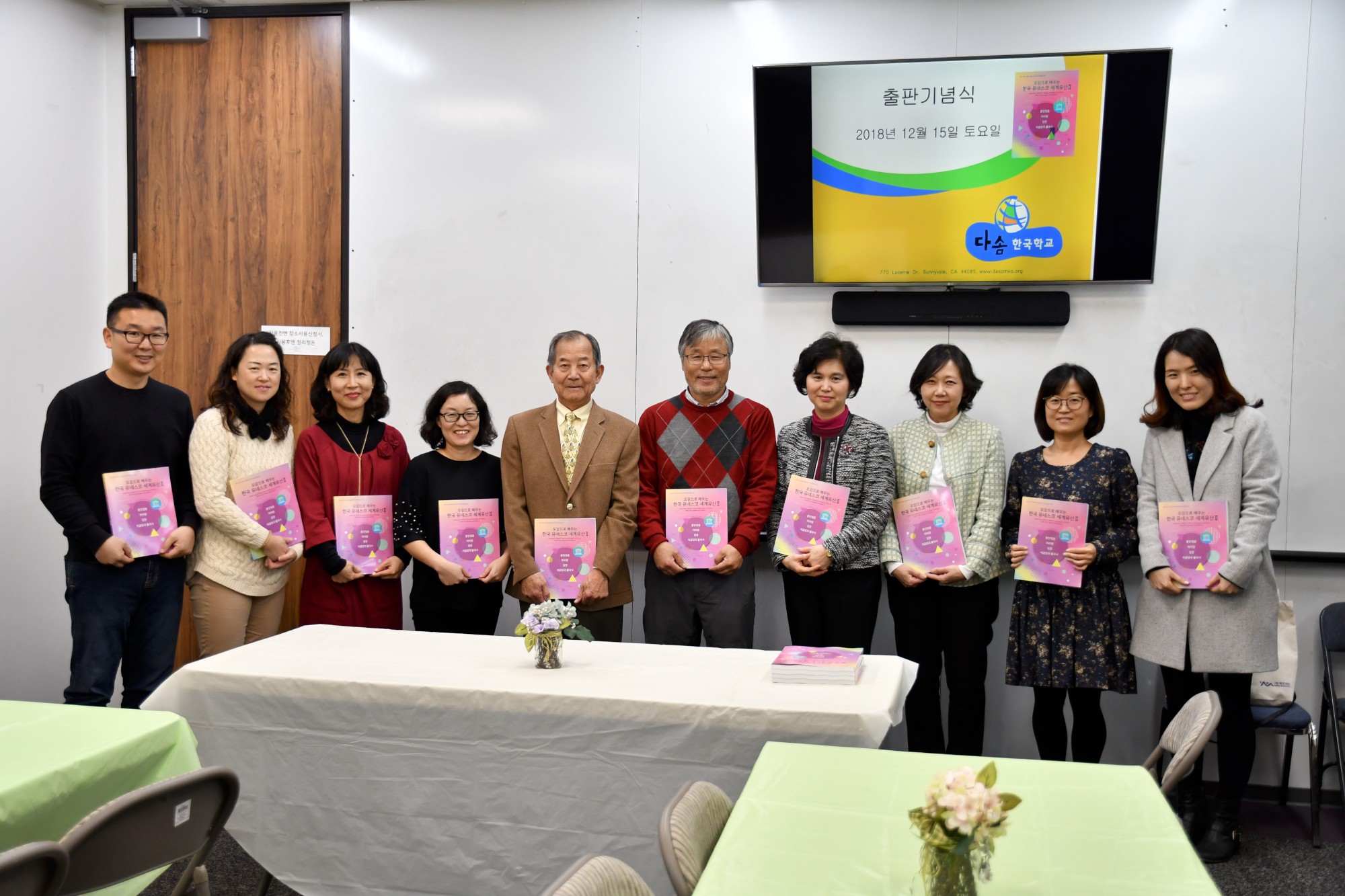 본교에서는 지난 2018년 12월 15일에 <오감으로 배우는 유네스코 세계유산 II>를 출판하고 출판기념회를 했습니다. 재외동포재단 맞춤형 사업의 하나로 출판된 교재는 유네스코 세계유산에 등재된 한국 유산 중에 네 가지를 선택하여 역사문화 교육과정으로 정하고 지난 1년간 학생들에게 실제로 가르치면서 적용하고 경험한 내용을 바탕으로 발간하게 되었습니다. 2017년 발간된 1권에 이어 총 9가지의 유네스코 유산에 관하여 동포 학생들의 눈높이에 맞추어 활동 중심의 책을 발간하였습니다.