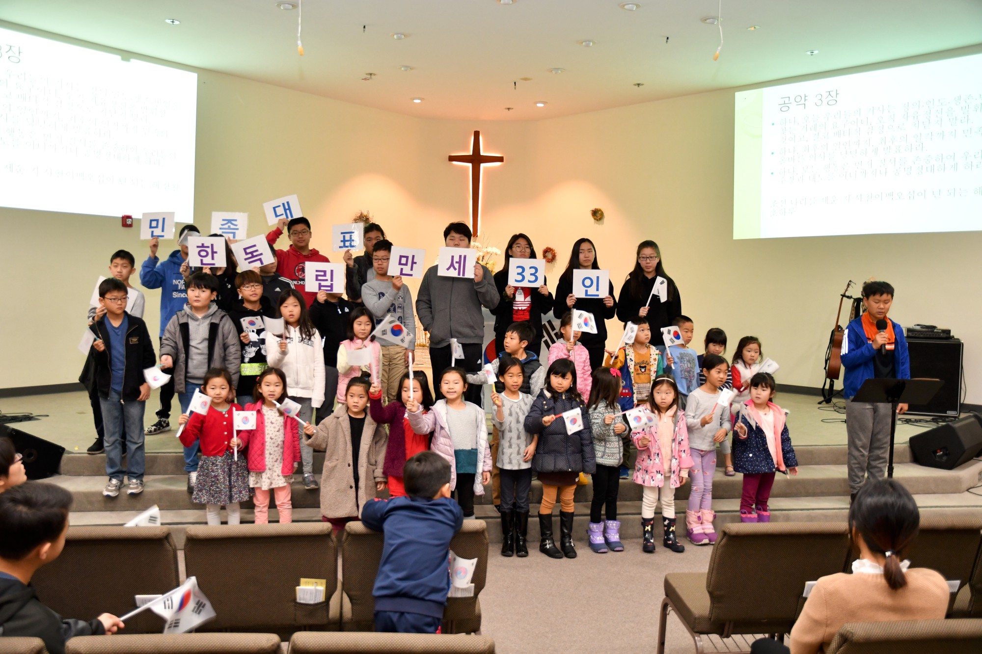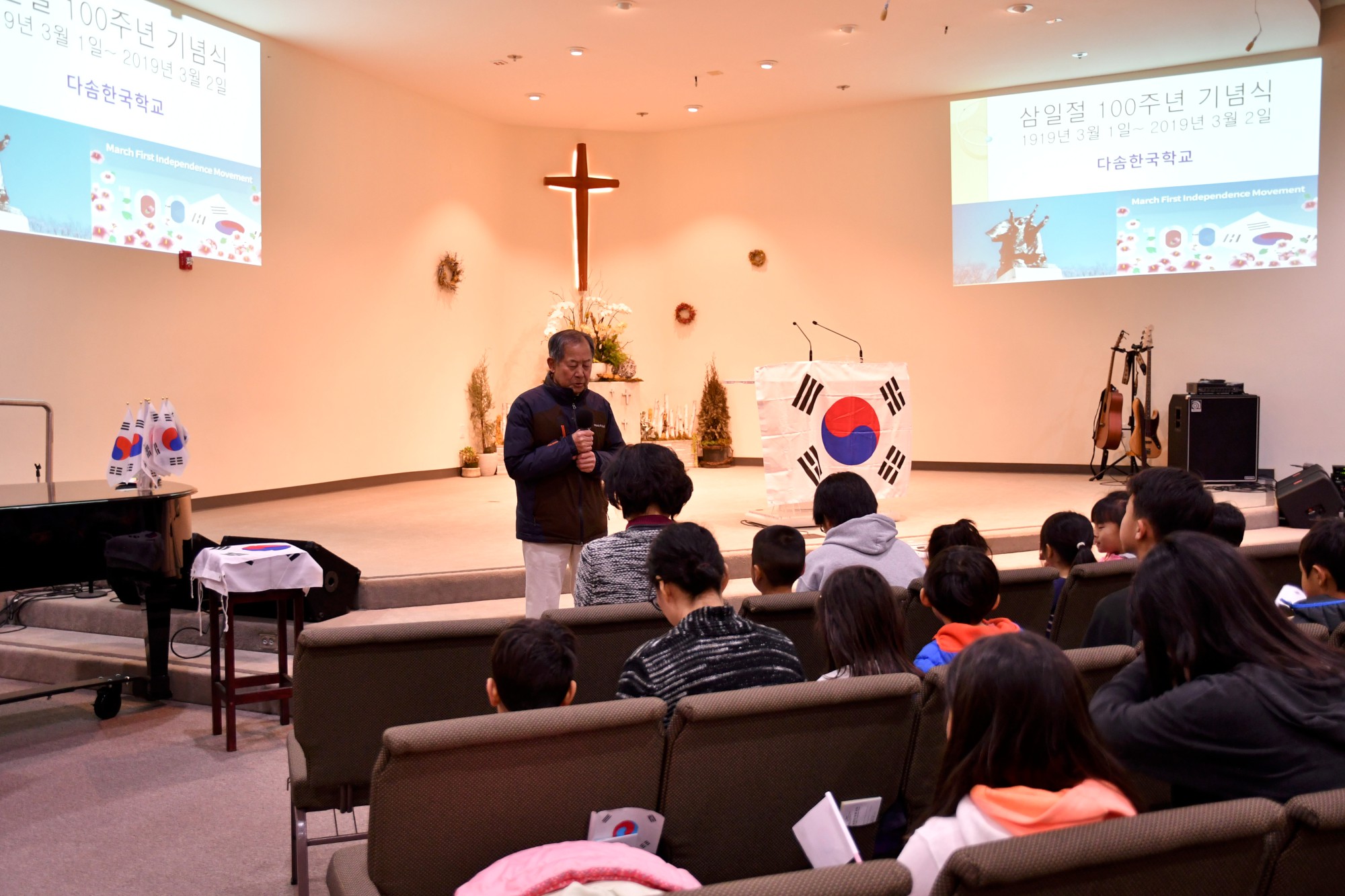 100년 전에 들렸을 "대한독립만세" 함성이 한반도를 벗어나 미국 캘리포니아 주 서니베일 시에 위치한 다솜한국학교(교장 최미영, 이사장 정철화)에서도 지난 3월 2일에 울려 퍼졌습니다. 다솜한국학교에서  행해진 삼일운동 100주년 기념식에서는 삼일독립만세 운동에는 어린 학생들도 주도적으로 참여하여 비폭력, 무저항 만세 운동으로 조선의 자주 독립을 외친 사건을 공부하고 함께 재현해 보았습니다. 학생들은 일본에서 있었던 2.8 독립선언의 대표자와 민족대표 33인이 되어 보기도 하고,  탑골 공원에서 기미독립선언서를 낭독하며 만세운동을 벌인 학생 역할도 해보면서  선조들이 나라의 독립을 위해 얼마나 슬기롭고 담대하게 외쳤는지를 배웠습니다.  일생에 한번 만나기 어려운 100주년이라는 특별한 기념일에 기미독립선언문을 낭독하고 유관순 열사에 관해 배우면서 미국에 사는 우리 학생들은 자신이 독립된 나라의 후손임과  한국어와 한국역사 문화를 자유롭게 배우고 사용할 수 있는 것이 얼마나 감사한 일인지를 더욱 깨닫게 되었습니다.
