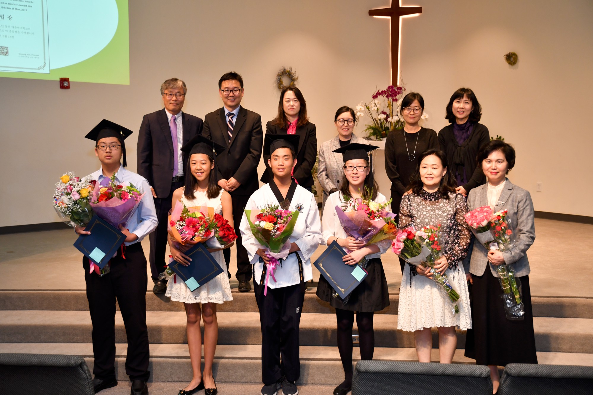 2019년 졸업식이 지난 5월 18일 토요일 오후 12시에 산호세한인장로교회 본당에서 있었습니다. 올해 졸업생은 강태희, 고유진, 김진주, 배정환, 최하은 학생입니다.