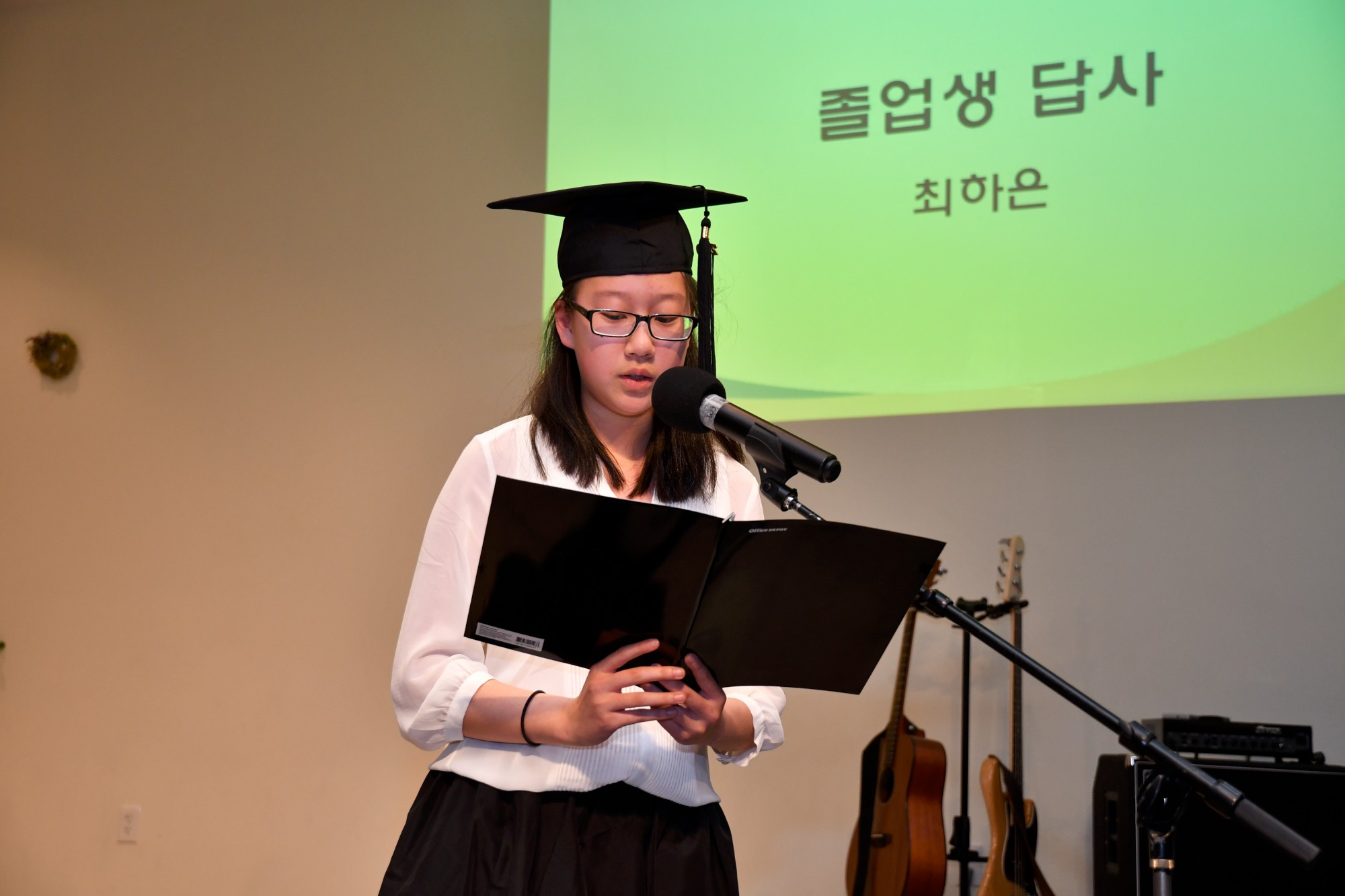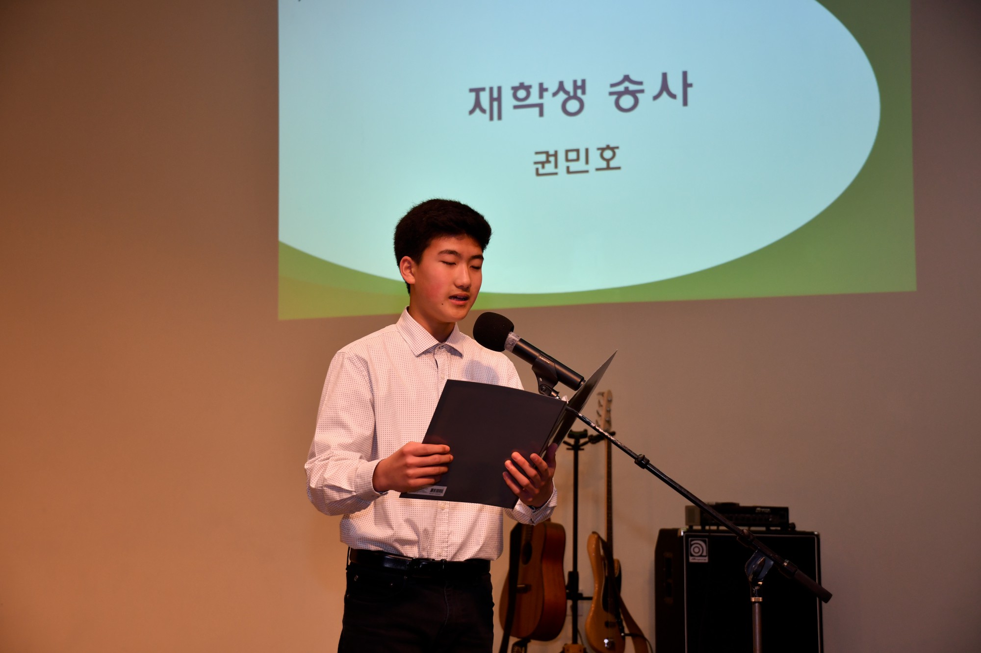 재학생 대표로 권민호 학생이 선배들에게 보내는 글을 낭독했고 졸업생 대표로 최하은 졸업생이 답사를 했습니다.