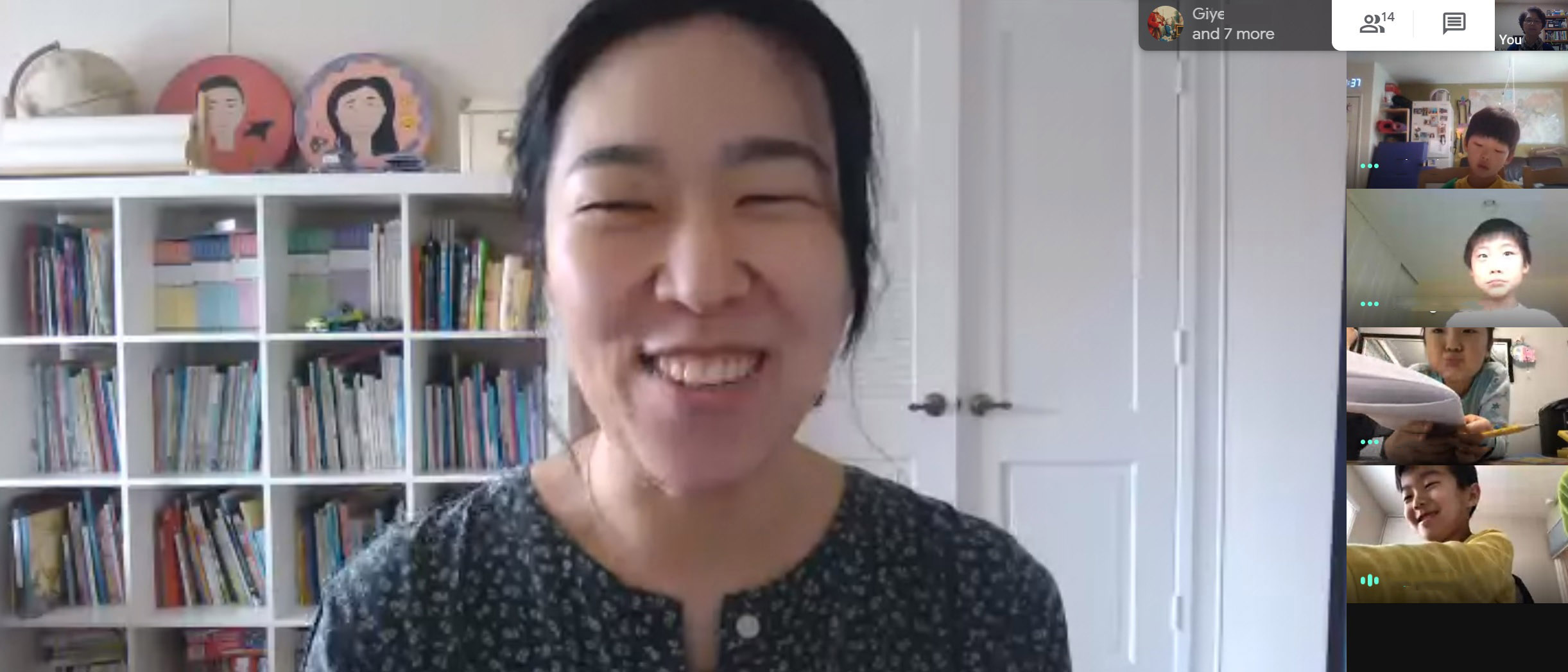 나이가 가장 어린 반인 사랑반은 부모님과 함께 수업에 들어온 경우가 많았고 부모님들께서 함께 화상 수업에 들어오셔서 협조도 많이 해주셨습니다. 오래 한 자리에 앉아 있기가 어려웠을 것이나 최선을 다하는 학생들의 모습이 보였습니다. 교실에서 면대면 수업을 할 때는 옆의 친구와 장난을 치던 학생들도 혼자서 공부하니 심심해 하는 모습도 보였습니다. 교실 수업에서는 두 분의 보조교사가 함께 해서 선생님의 수업을 도왔지만 화상 수업에서는 그렇지 못한 상황이어서 어려운 점이 있었습니다. 부모님들이 함께하시면서 선생님께 수고하셨다는 코멘트를 남겨 주셨습니다. 사랑반 담임 선생님은 이번 주 수업을 통해서 알게 된 점을 다음 주 수업에 적용하시겠다고 했습니다.
