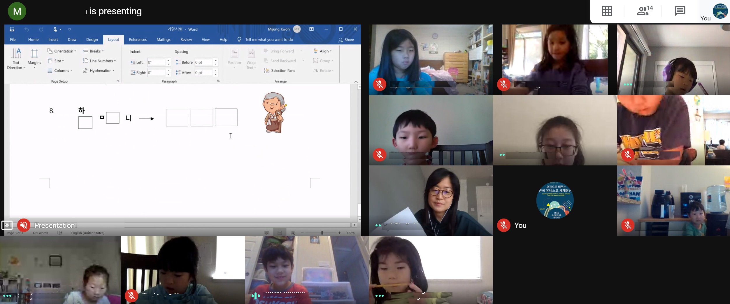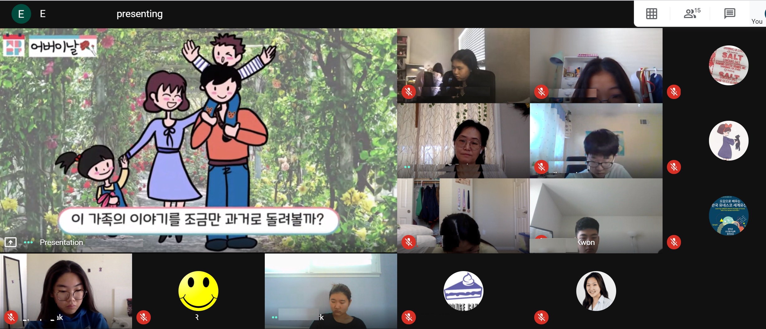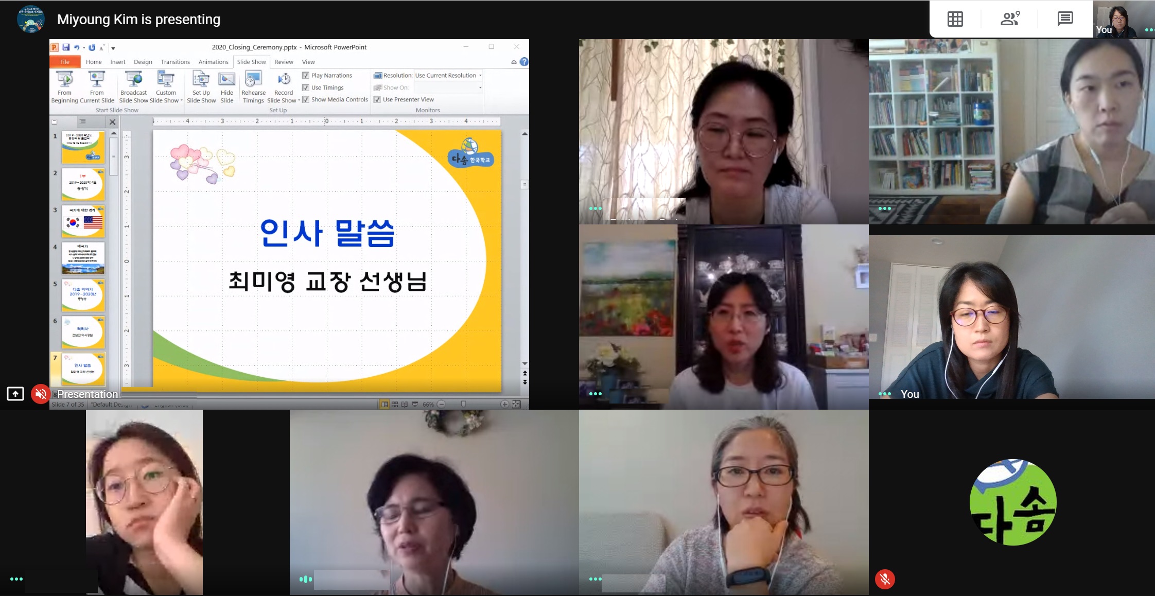 다솜한국학교에서 대체수업이 시작된지 9회째가 되었습니다. 학생들도 대체수업에 잘 적응하고 있습니다. 선생님들의 수고가 많으시지만 최선을 다해 대체수업에 임하고 계십니다. 오늘은 한국의 어버이날과 미국의 어머니날을 맞이하여 어머니날 관련 수업을 하였고 교과서를 다 마친 반에서는 선생님들이 계발하신 수업 자료로 공부했습니다. 또한 한국 역사문화와 관련하여 지난 1년 동안 배운 내용을 복습하는 시간을 가졌습니다.
