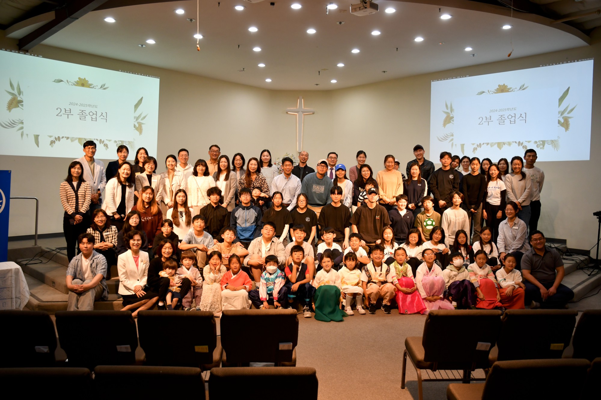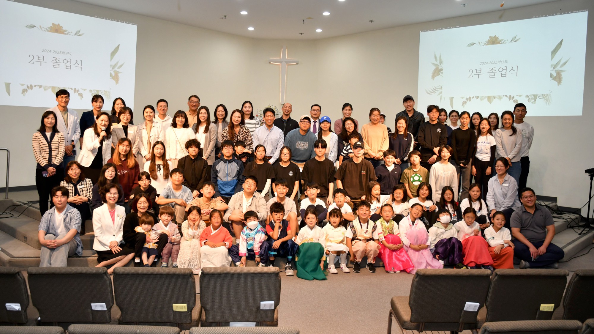 졸업식은 선생님들의 축하 메시지와 박석현 목사님의 축도로 마무리되었습니다. 또한 지난 1년 동안 배운 내용을 발표하는 자리도 마련되어, 소고춤, ‘모두가 꽃이야’, 윤동주 시인의 ‘서시’ 낭송, <강아지 똥> 연극, '밀양아리랑' 챌린지 등 다채로운 무대가 이어졌습니다.