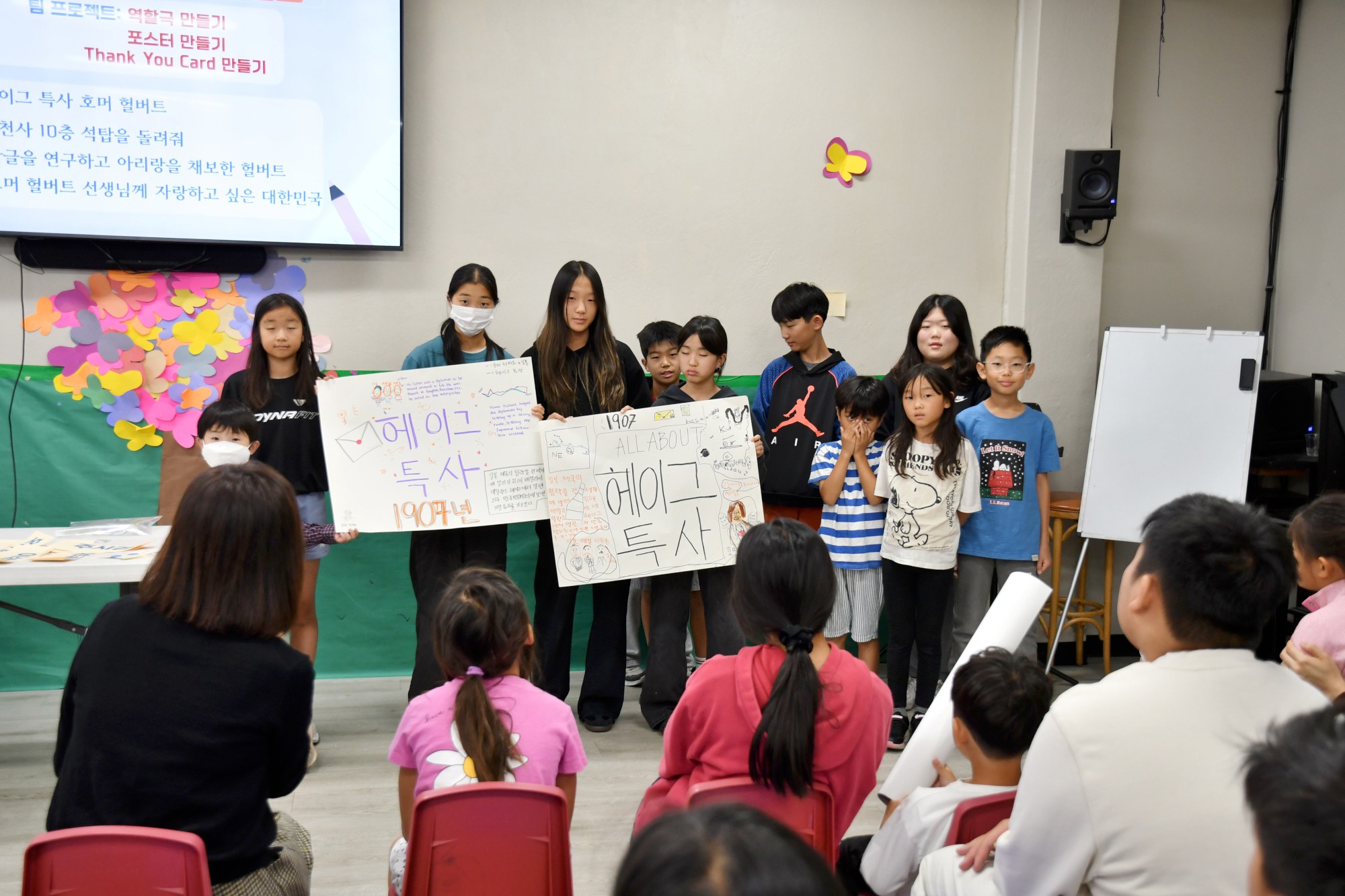 학생들은 헐버트가 남긴 말 중 가장 감동적인 문장을 골라 발표하고, 팀 별로 헐버트 박사께 드리는 감사 인사를 포스터로 제작해 발표했습니다. 앞으로 4주 동안 각 반 수준에 맞춘 학습지와 역할극 대본을 통해 심화 학습을 진행할 예정입니다.