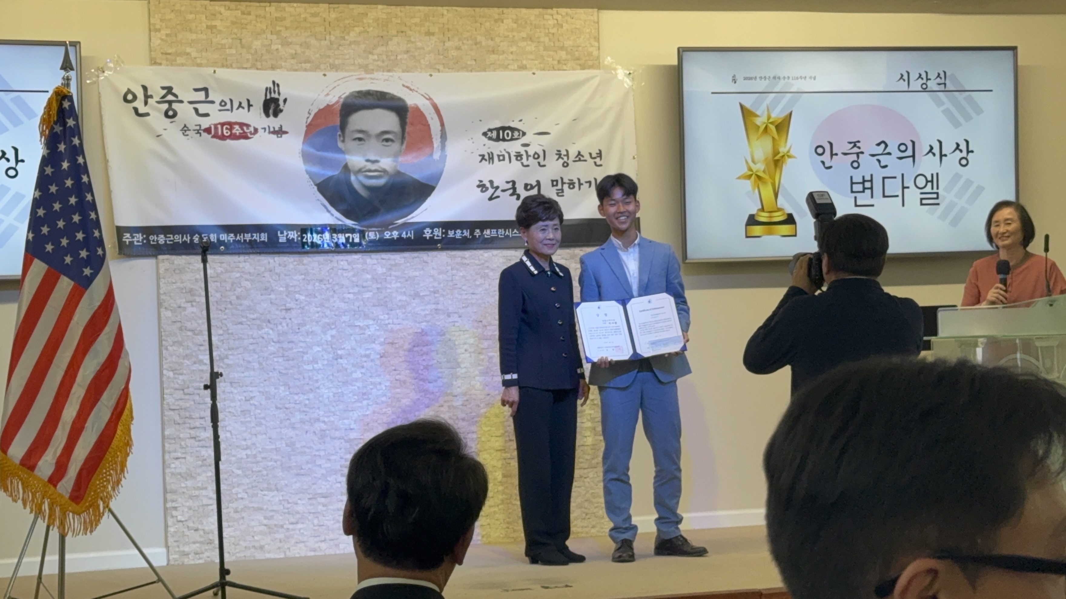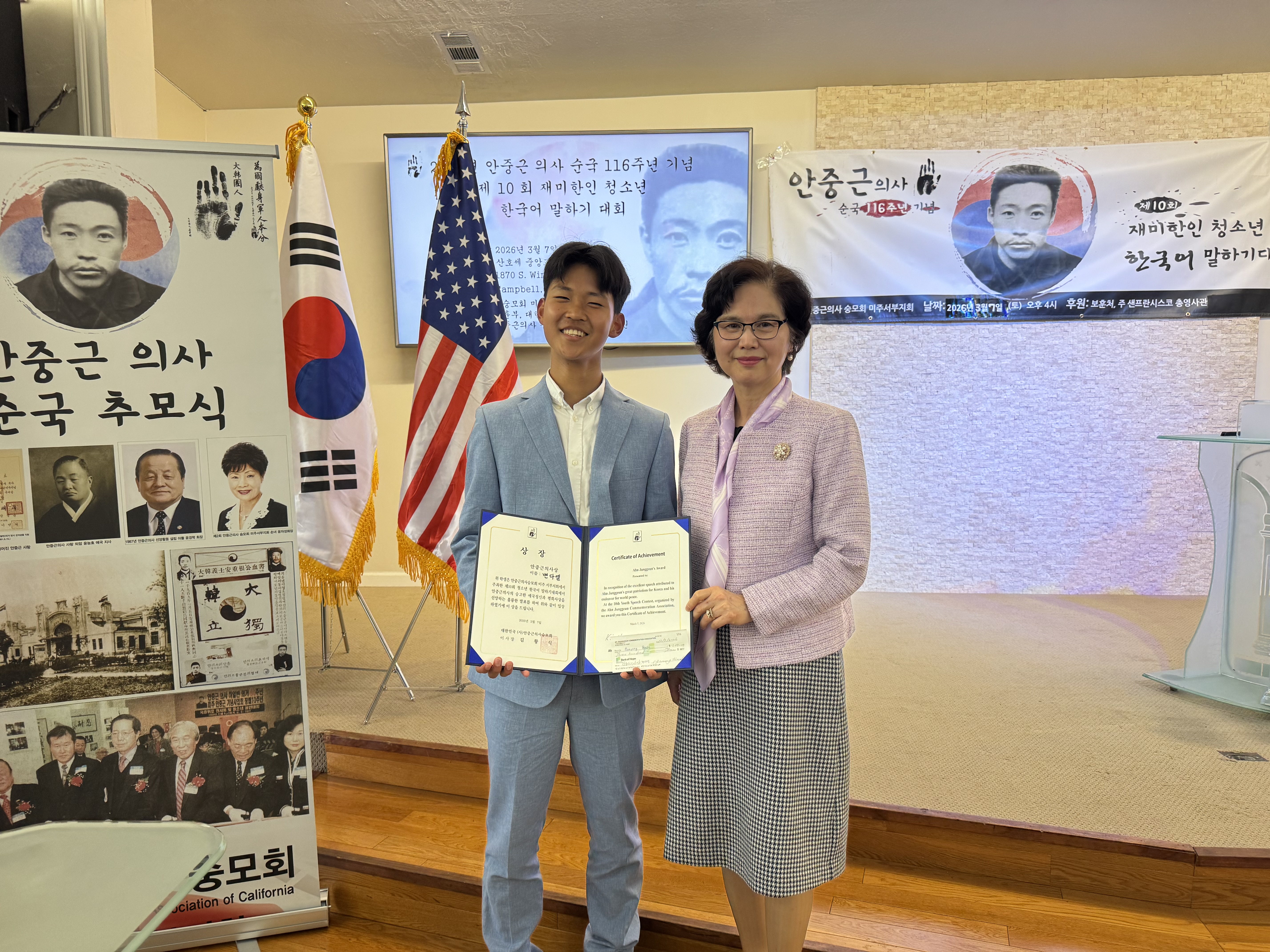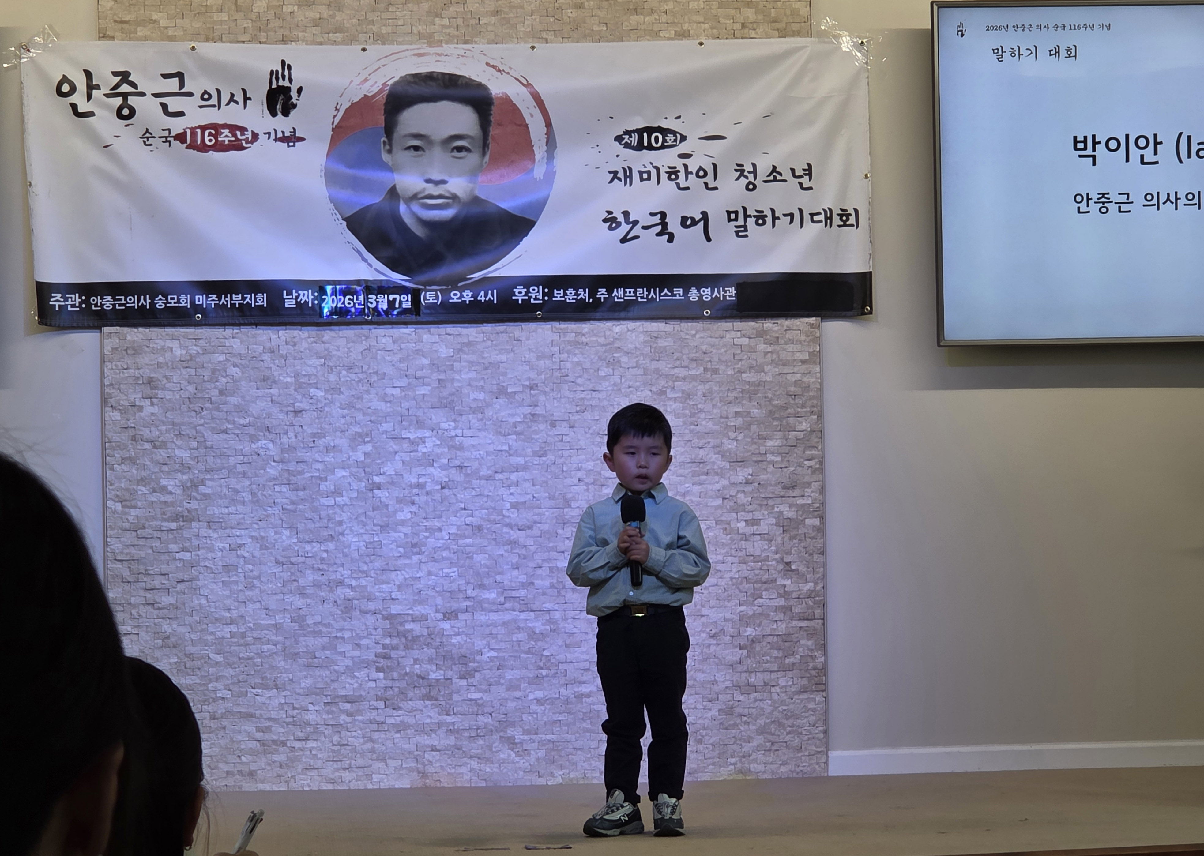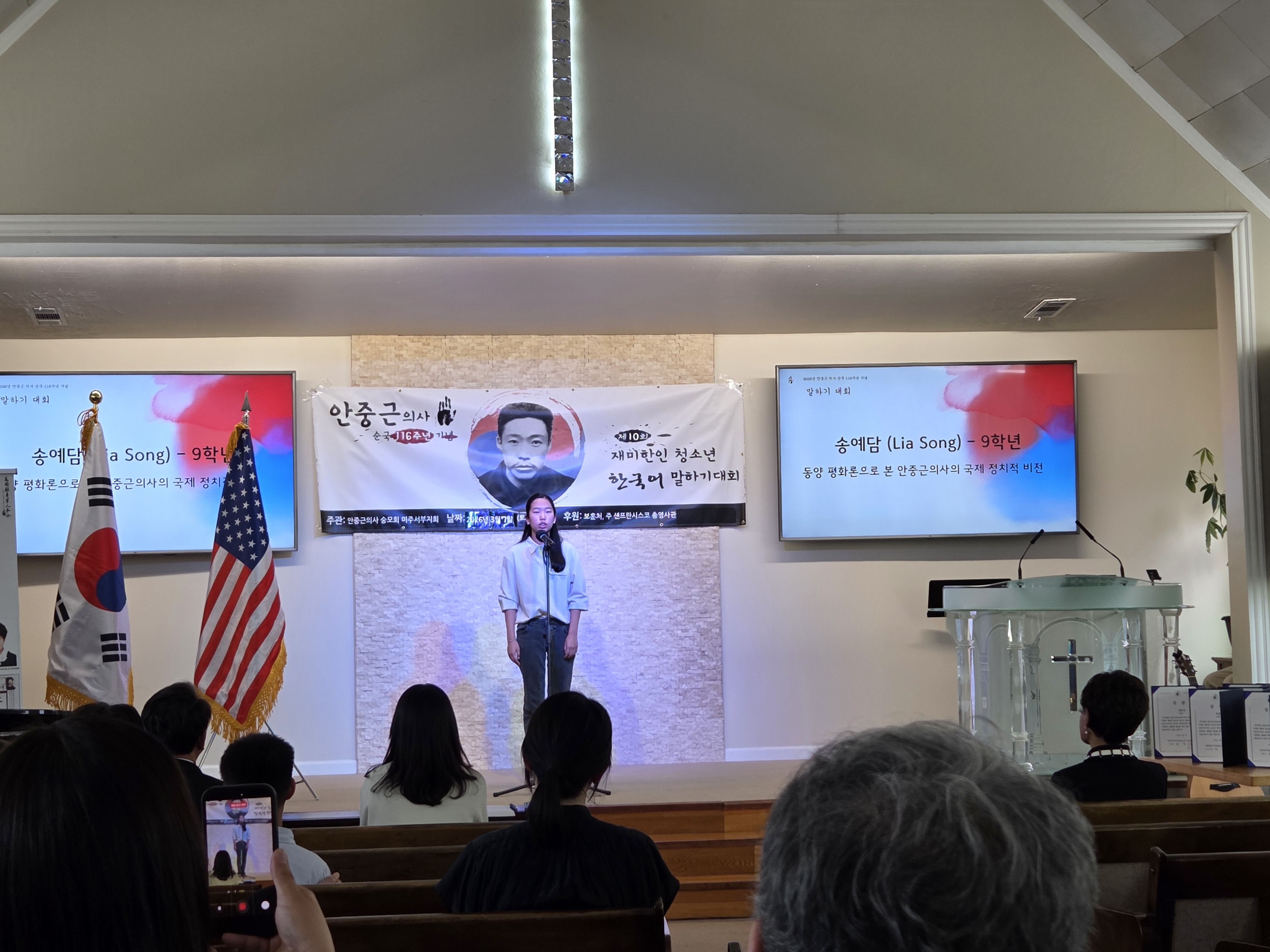 안중근 의사 순국 116주년을 기념해 3월 7일 오후 산호세 중앙교회에서 ‘제10회 재미한인 청소년 한국어 말하기 대회’가 개최되었습니다. 본교에서는 박이안(해랑반), 이서준, 송예담, 변다엘(대한민국반) 학생이 참가하였습니다.