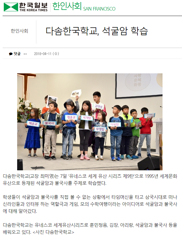 [미주한국일보]다솜한국학교, 석굴암 학습