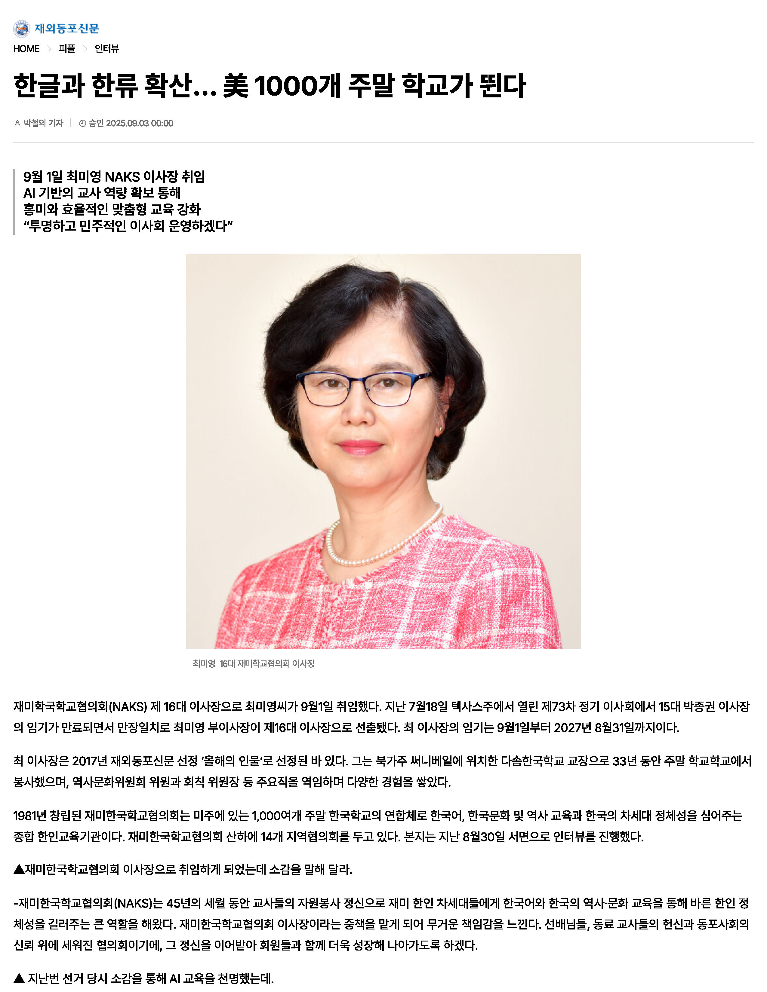 [재외동포신문] 최미영 NAKS 이사장 취임