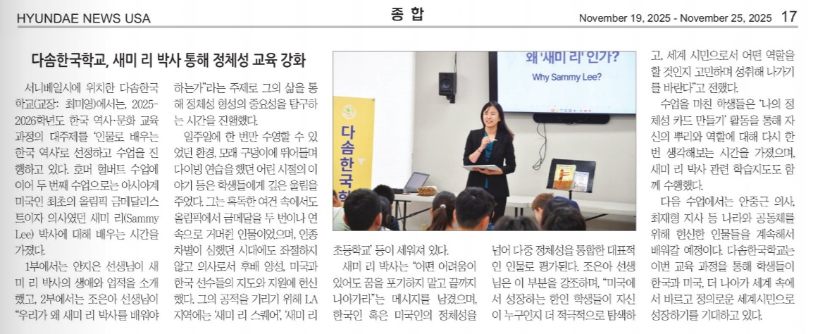 [현대뉴스] 새미 리 박사 통해 정체성 교육 강화